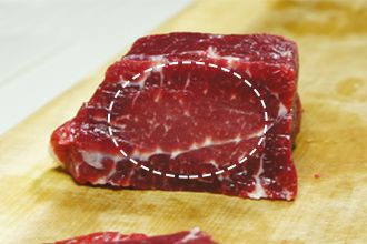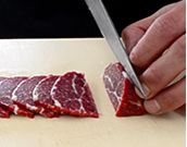 スライスする際には肉の繊維目にご注意ください。 この繊維目に逆らうようにして垂直にスライスすることで、お肉の食感が柔らかくなります。 逆に繊維目に沿って切ってしまいますと、食感が固くなってしまうので要注意です。