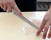 (4)概ね2〜3mmくらいの厚さで切ってください。