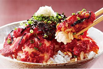 アツアツの銀シャリに、タレが絡んだ馬刺しをのっけて食べる。あまりのおいしさにガーッとかき込むこと間違いなし。